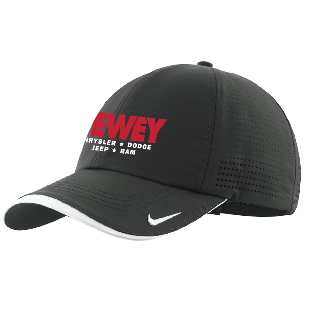 Maximum comfort is available with Dri-FIT moisture-management technology and perforated mid and back panels. A contrast under-bill reduces sun glare. This 8-panel cap has an unstructured, low profile design with a hook and loop closure. The contrast Swoosh design trademark is embroidered on the bill and center back with the Dewey Chrysler * Dodge * Jeep * Ram logo embroidered on the front of the cap.