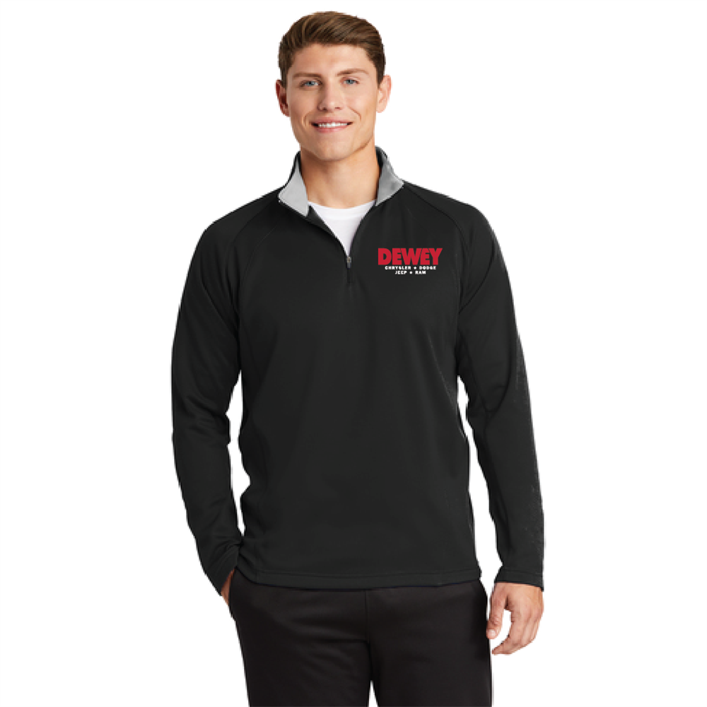 This 8-ounce, 100% polyester Pullover features Sport-Wick technology that transforms anti-static fleece into an excellent warm up and cool down option. Now your top layer releases moisture from inner layers, keeping your skin comfortably dry. Features include a contrast lining in cadet collar and tonal shoulder panels. The Dewey Chrysler * Dodge * Jeep * Ram logo is embroidered on the left chest.