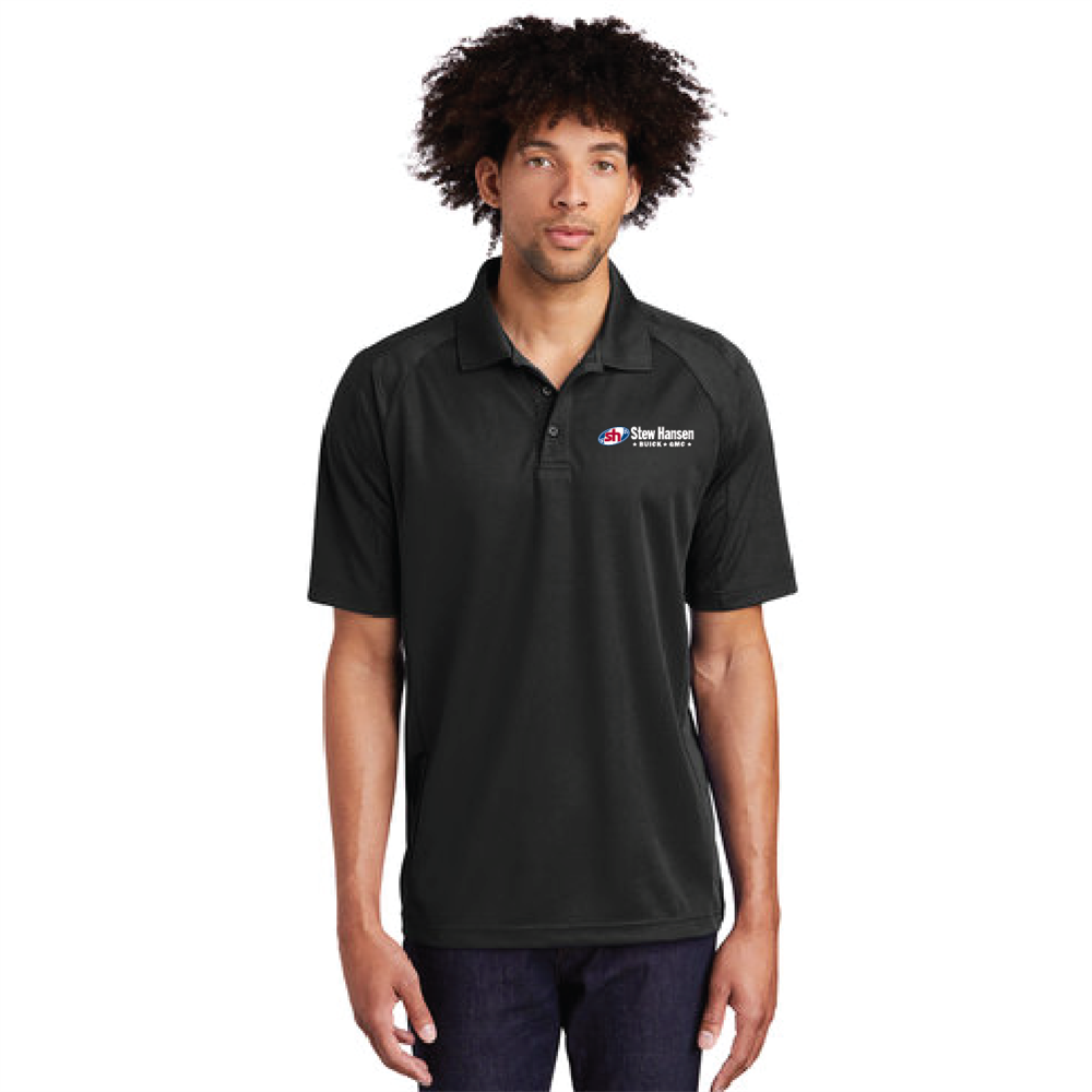 mobility. Polo features a tag-free label, flat knit collar, and 3-button placket with dyed-to-match buttons. the Stew Hansen Buick * GMC logo is embroidered on the left chest.