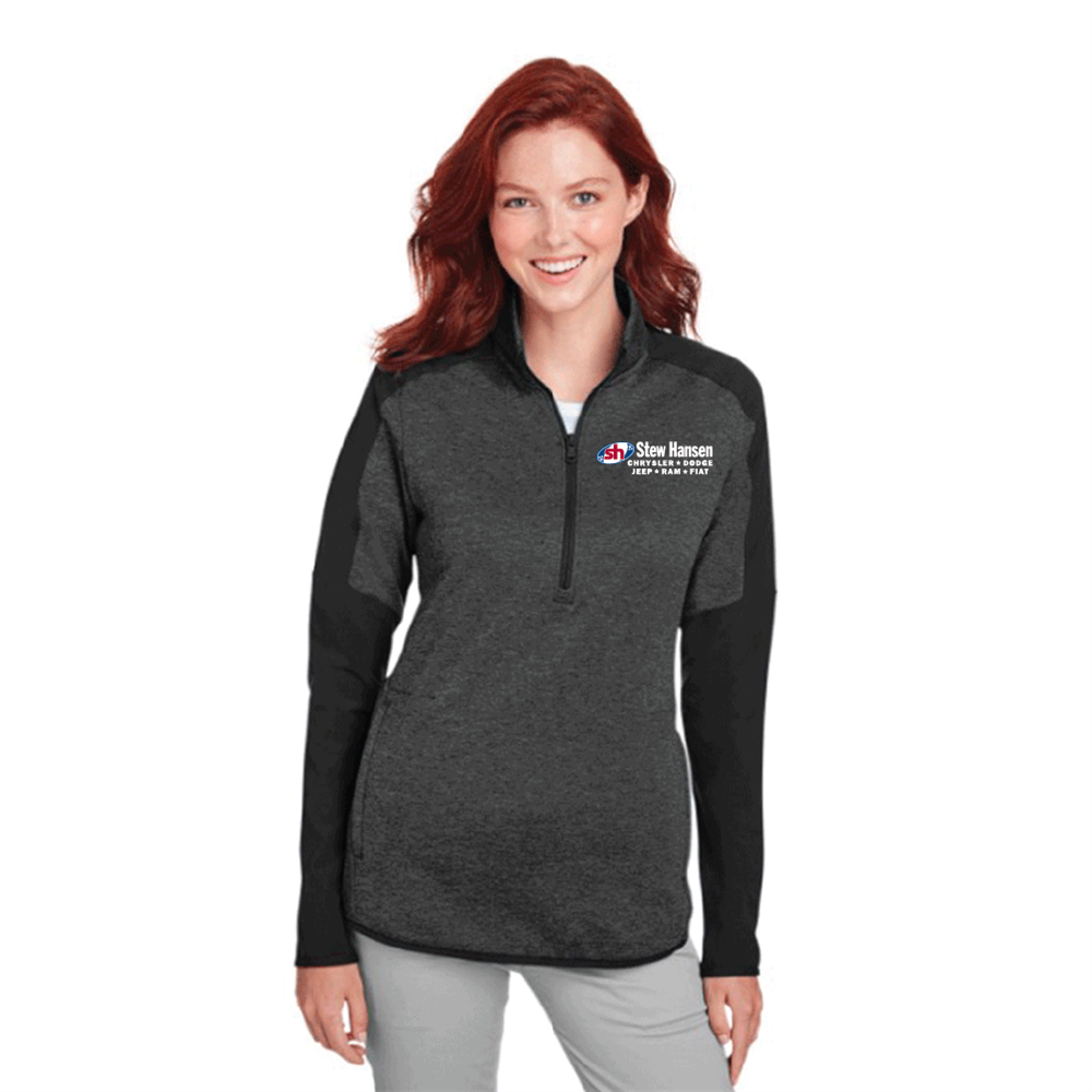 Show off your brand on the Under ArmourLadies' Qualifier Hybrid Corporate Quarter-Zip. The Colorblock Polo features moisture wicking HeatGear fabric and flat back mesh inserts that keeps you cool, dry and comfortable.  Available in sizes XS-3XL with the "Stew Hansen Chrysler * Dodge * Jeep * Ram * Fiat" logo on the left chest.