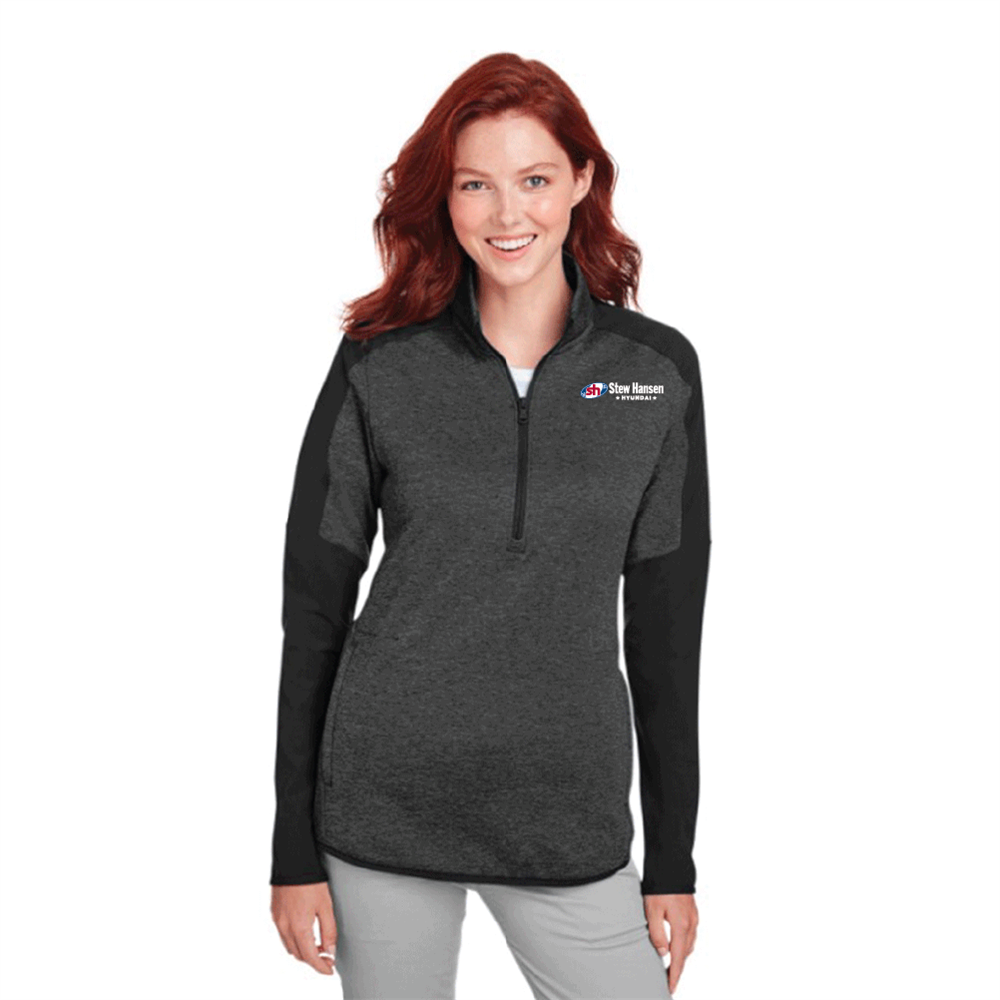 Show off your brand on the Under ArmourLadies' Qualifier Hybrid Corporate Quarter-Zip. The Colorblock Polo features moisture wicking HeatGear fabric and flat back mesh inserts that keeps you cool, dry and comfortable. Available in sizes XS-3XL with the Stew Hansen Hyundai logo on the left chest.